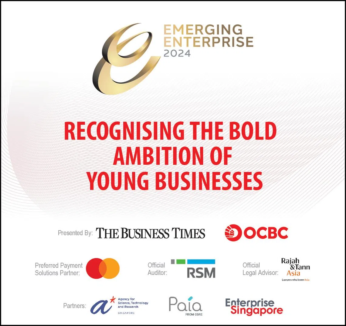 All finalists for the Emerging Enterprise Awards 2024. This is the second year that applications were opened to emerging businesses across the region. Over 650 applications from a broad mix of industries were received, more than 200 of which were from Hong Kong, Malaysia and Indonesia. A total of 30 companies were selected as finalists and the winners were decided by a panel of judges from established corporations. PHOTO: ALVIN TAN