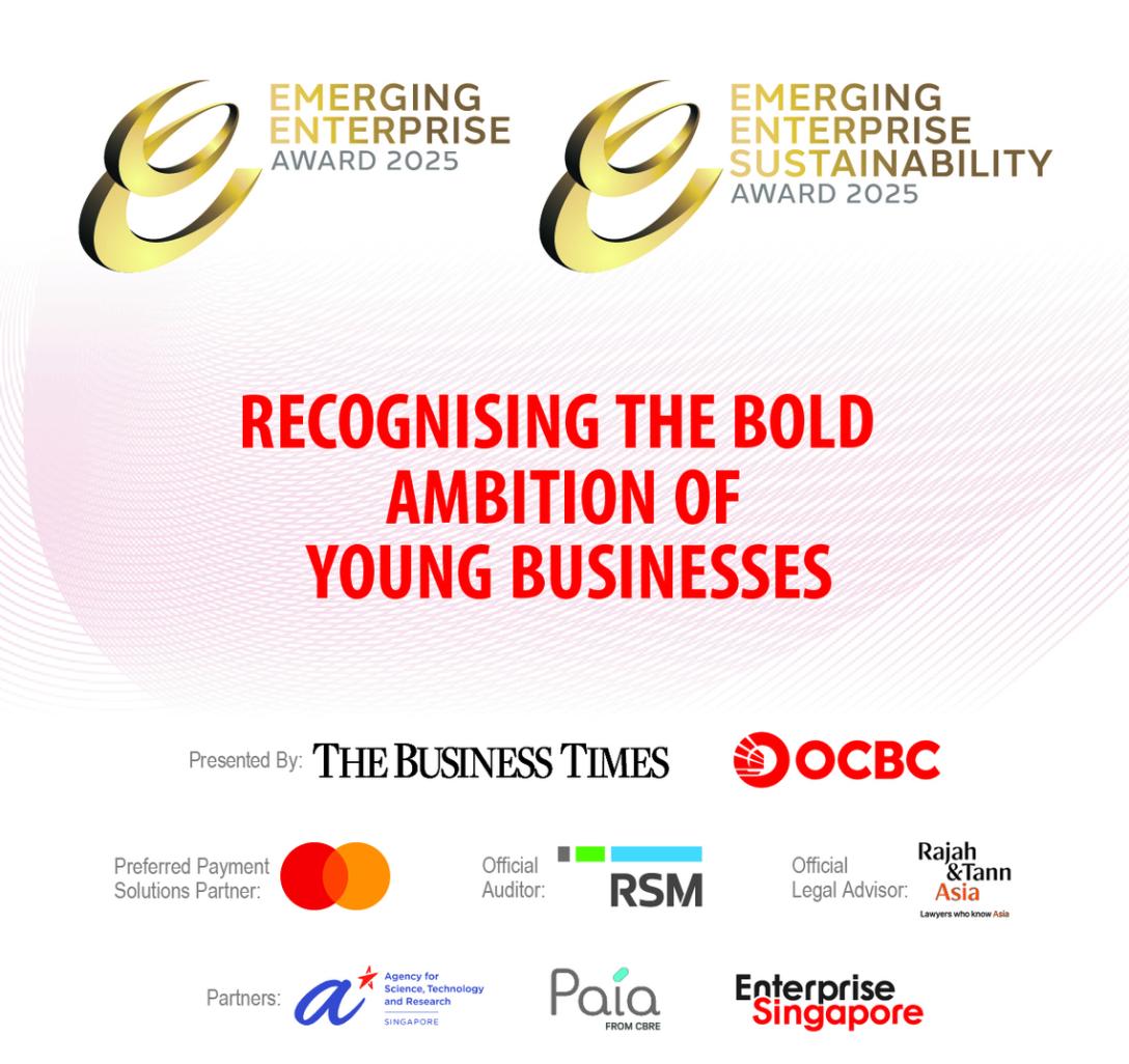 This year’s awards are co-presented by The Business Times and OCBC, and supported by Mastercard; Rajah & Tann Asia; RSM Singapore; the Agency for Science, Technology and Research (A*Star); Enterprise Singapore; and Paia from CBRE.
