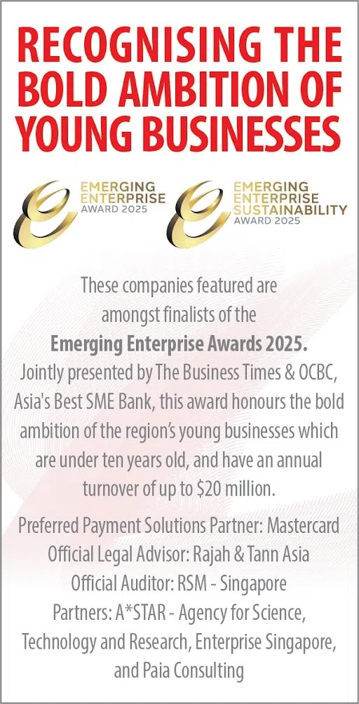 They are among the finalists of this year’s Emerging Enterprise Awards. Established in 2008, the awards recognise startups and young businesses across Singapore and Asia, providing resources to boost their growth.