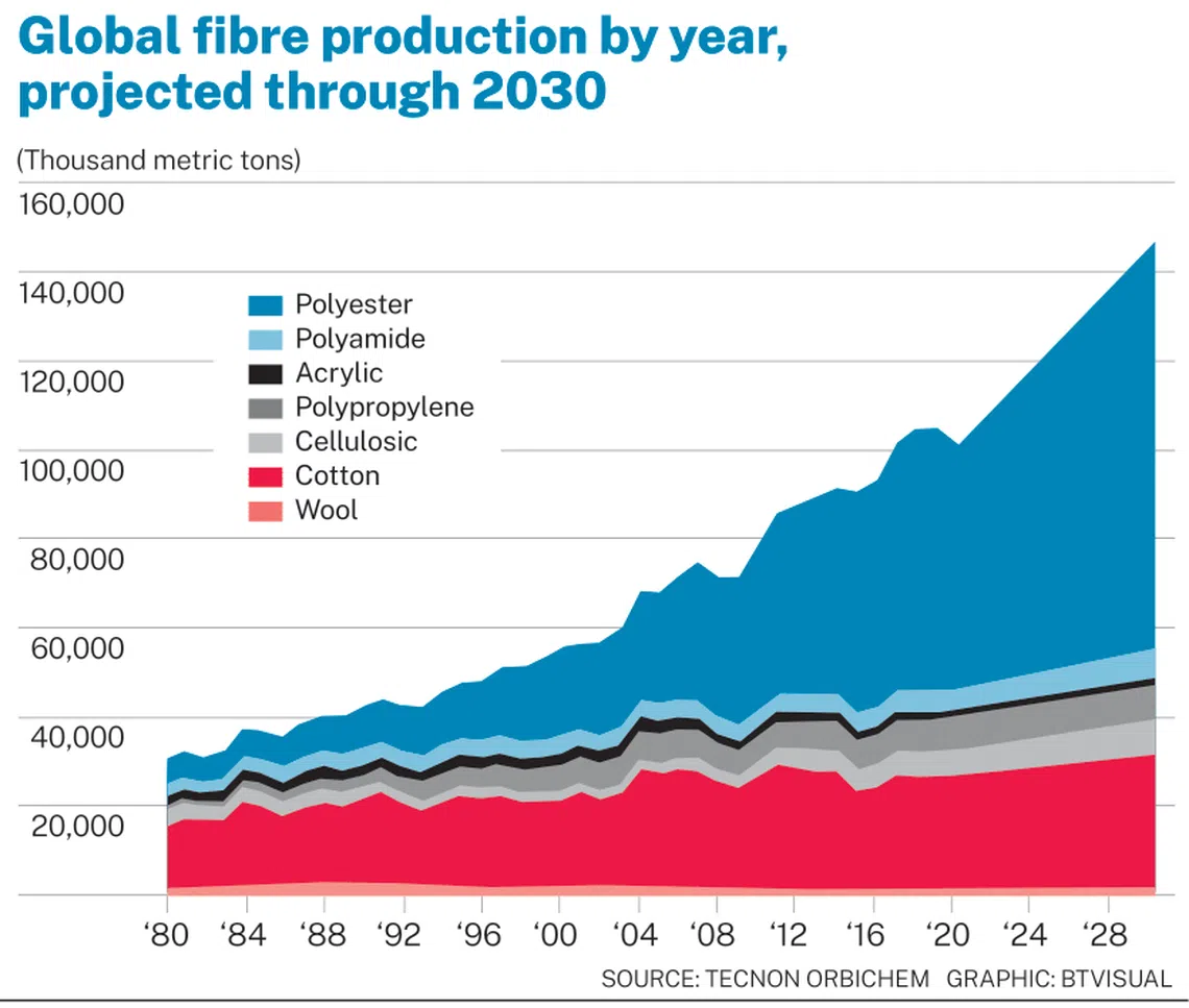 The fashion industry today relies heavily on petrochemicals in its use of cheap synthetic fibres.