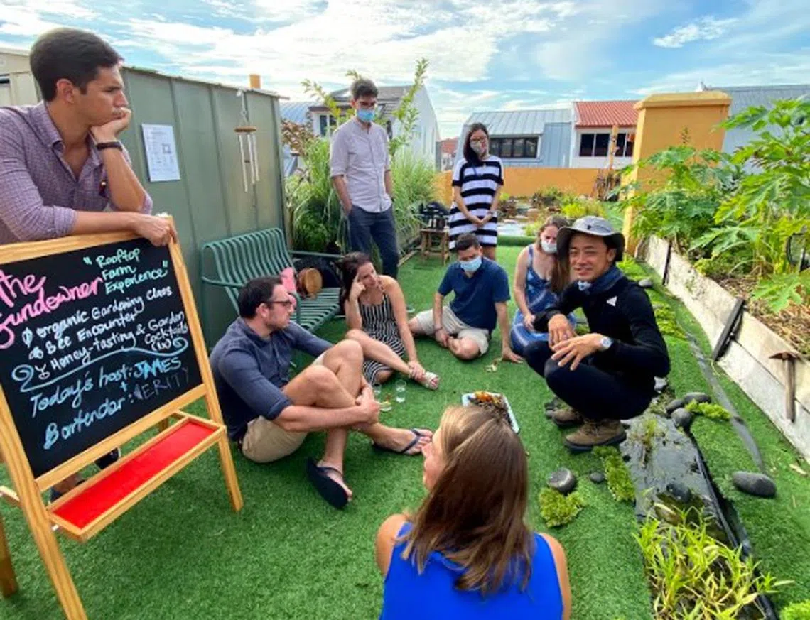 THE amber Siglap shophouse that houses nature experience centre The Sundowner buzzes with activity, especially on weekends, from pizza-making to cocktails-mixing, open-air movie screenings and terrarium-making. And at its rooftop farm – close encounters with earthworms, ants and bees.