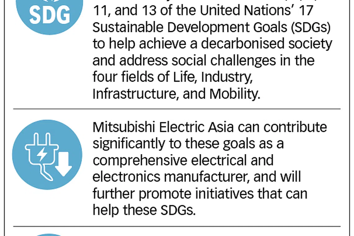 Mitsubishi Electric Asia works to realise its sustainability ambitions through all its business and social impact activities that are designed to create economic and social values, as well as address diverse social challenges. The starting point of this important journey involves integrating the concept of the United Nation's Sustainable Development Goals (SDGs) into the company's management strategy.