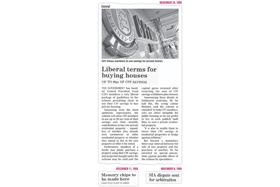 THE evolution of the Central Provident Fund (CPF) took a major step in 1980 when the government allowed Singaporeans to use what was supposed to be retirement savings to buy private property.