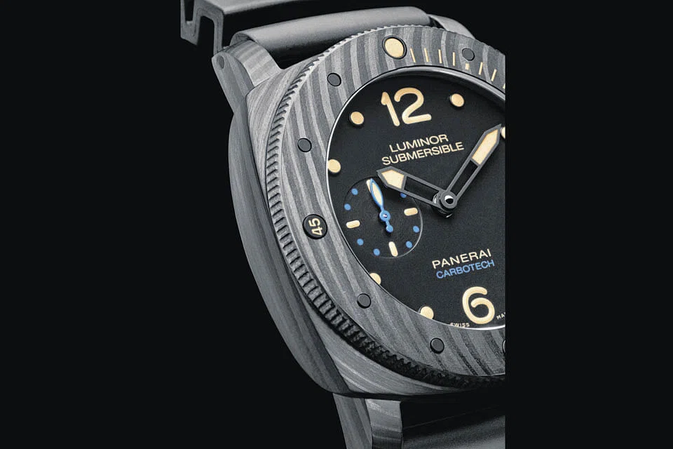 Carbotech also features a case which Panerai says is fashioned out of a material that's never been used in the world of watchmaking: carbotech, a composite based on carbon fibre.