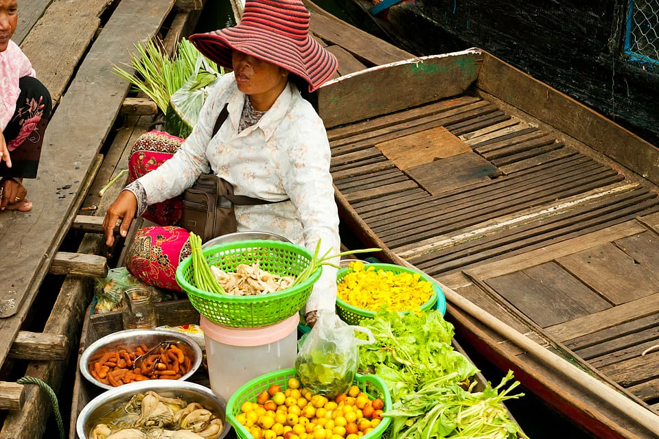 The land activities contrast sharply with the abundant luxury on board. Around 60 million people live on or near the 4,350 km-long Mekong River, relying on this resource for water, farming, fishing, transport or commerce.
