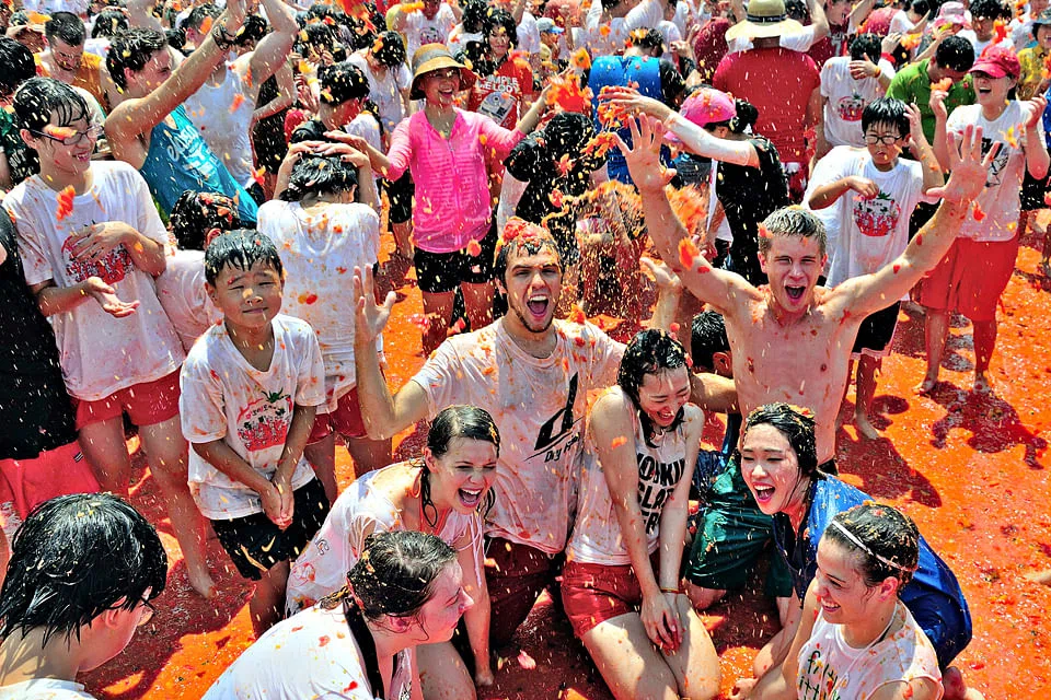 The border areas are also the scene of enjoyable annual festivals. The diverse seasonal festivals are full of sightseeing attractions, food, and fun things. Visitors can taste the wild greens grown in spring; have outdoor fun in the summer, harvest experiences in autumn and ice-fishing experiences in winter. For example, the Tomatoes Festival in Hwacheon, Gangwon Province, is held in August and has been held around the town of Sachang since 2003 and over 10 million people have visited every year, enjoying various experiences involving tomatoes, such as tomato zenga, tomato wrestling, tomato sliding, and making a tomato sandwich.