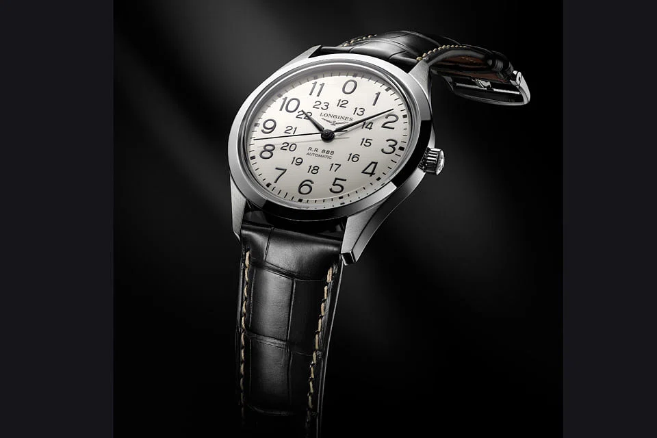 Longines' watches at the start of the 20th century were worn by the staff of many railway companies in many countries, including the US and China. They are precise and good quality timepieces - a must-have requirement for a secure and reliable railway service. Longines has leveraged its reputation and experience in making such accurate timepieces to launch the RailRoad, a watch inspired by a model developed in the 1960s and worn by railwaymen. The dial gives the hour in a 24 - hour format, which was once used in railway schedules. There are two concentric hour circles: the outer one is for the first 12 hours of the day; the inner for the second 12 hours. Like the dial on the 1960s watch, it bears the letters "RR" (RailRoad) along with the number of the automatic movement, 888. The back of the 40mm stainless steel case, like the backs of some railroad pocket watches in the 1920s, is engraved with a picture of a locomotive.