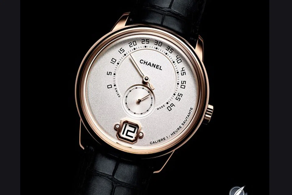 This watch came as a surprise at a time when many big names are paying more attention to women. It's a men's watch launched by a French fashion house that caters to women. Indeed, it's Chanel's first watch for men - and it's not just any men's watch. Chanel designed and built it entirely on its own, with a little help from some of today's most respected watchmakers, including Romain Gauthier. The effort is certainly ambitious, as this self-winding timepiece boasts two complications - an infant jumping hour and a retrograde which only more experienced brands would venture to make.