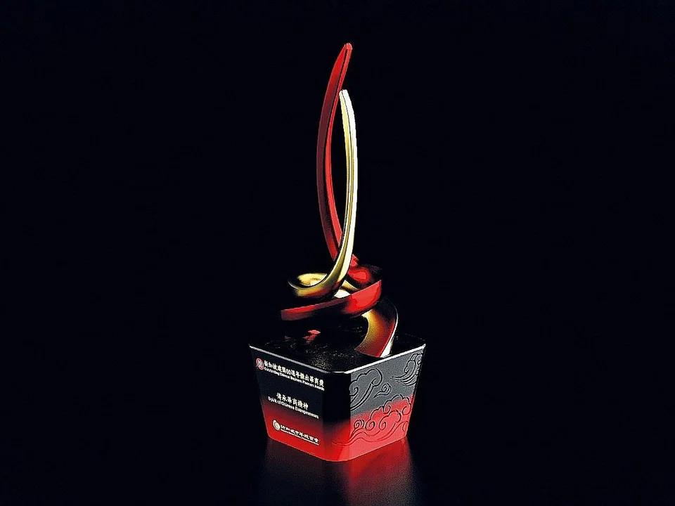 RED and black make up the two colours of the trophy's base, signifying the burning of charcoal into a raging fire which transmits boundless energy to the two iron spirals rising from the base. This symbolises the persevering spirit, courage and commitment of the Chinese business pioneers in laying a firm foundation for our nation's development.