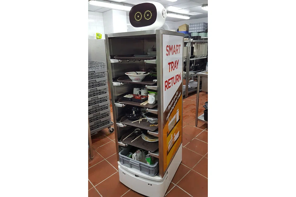 Food and beverage outlets in Singapore have grappled with getting customers to return their food trays after finishing their meals. Koufu hopes that the tray return robots will address the problem. Cleaners will also be freed up from tending to tables.
