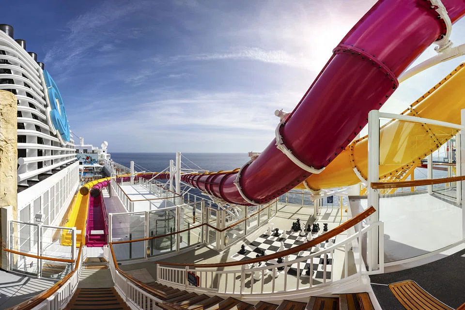 But if adventure is in your blood, answer its call with a romp at the cruise ship's waterslide park with six looping slides; or swing by the ropes course, with its 35m zipline that extends out over the side of the ship.