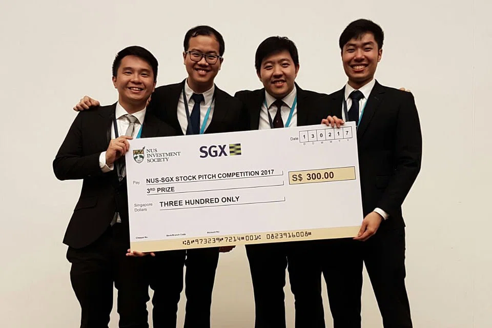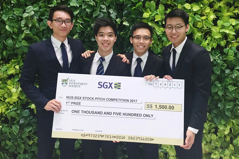 Nevin Tan Jian Ming, Yim Yi Xiang, Louis Quek Yi Fu and Jonathan Khoh had made a pitch to "buy" telco giant Singtel with a target price of S$4.52.