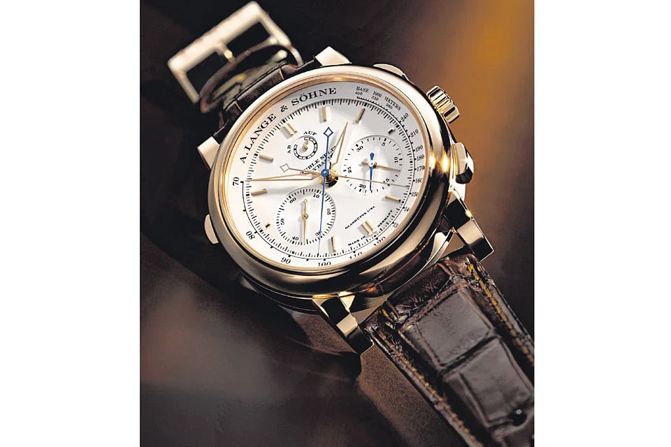 2004 -The Double Split. This added a new dimension to the stopwatch principle. It scored a first by enabling measurements of events lasting up to 30 minutes. The movement is Lange's first to be fitted with a balance spring developed in-house.