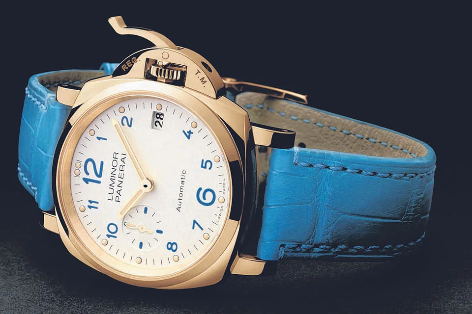 The timepieces come in a 42mm - already small among Panerai's models which have cases as big as 60mm - and a 38mm case, in stainless steel or red gold. These dimensions and characteristics make the watches very versatile, as does the new range of colours for the dials and straps of each new model.