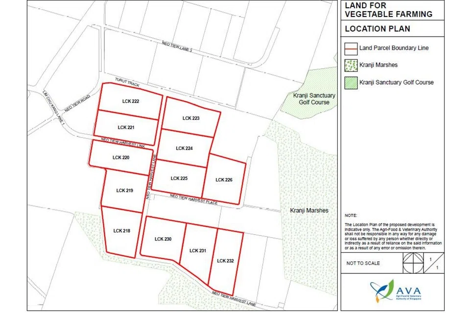 This follows the AVA's announcement earlier in May that new agriculture land for food farming in Lim Chu Kang and Sungei Tengah will be up for tender from August this year.