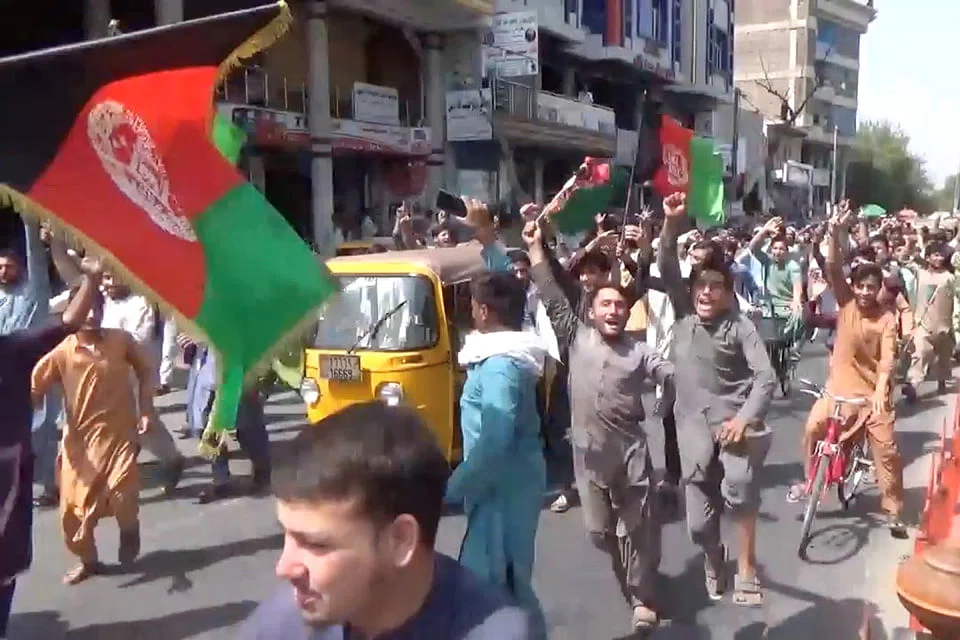 One woman walked wearing an Afghan flag around her shoulders, and those marching chanted "God is greatest". At some protests elsewhere, media have reported people tearing down the white flag of the Taliban.