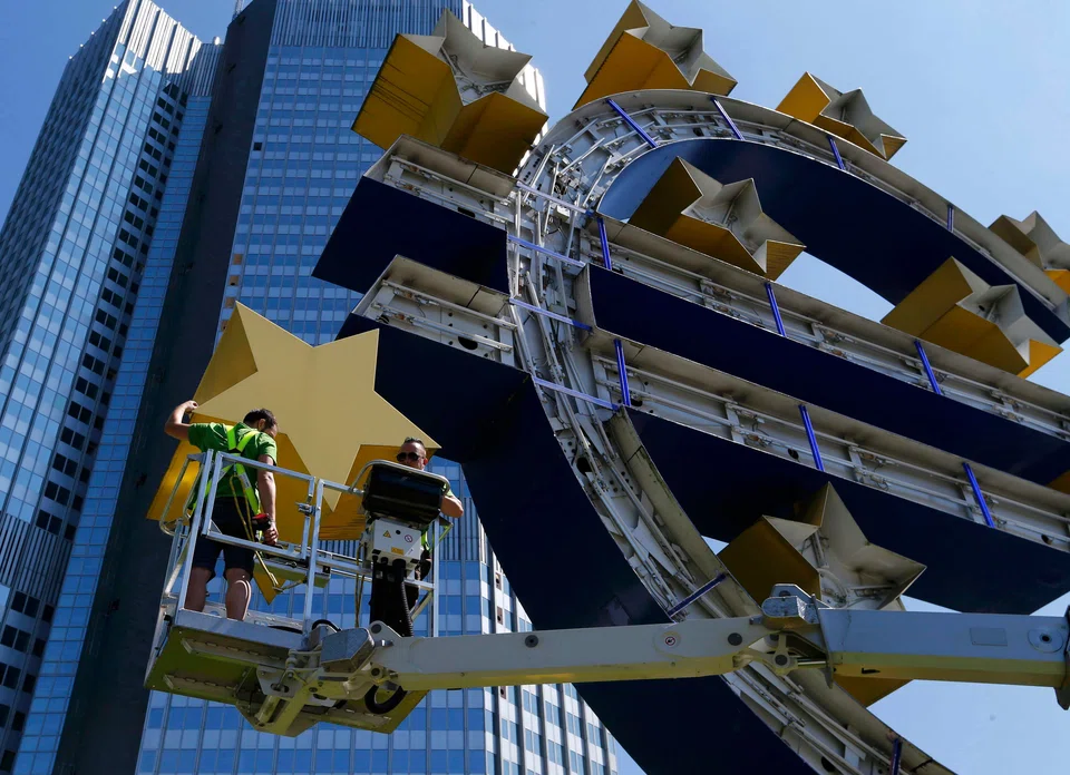 [FRANKFURT] The euro may be facing an existential crisis but the giant 14-metre sculpture of the euro symbol that towers over downtown Frankfurt, home of the European Central Bank, was still getting its biggest makeover in 13 years on Monday.