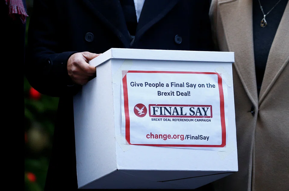 [LONDON] Supporters of a second referendum on Brexit from all of Britain's main political parties on Monday handed in a petition with more than one million signatures to Prime Minister Theresa May's Downing Street residence.
