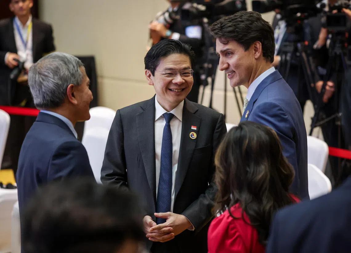 Singapore, as country coordinator for economic relations, will facilitate the mutually beneficial upgrade of the free-trade area, said Prime Minister Lawrence Wong in a speech on Thursday.