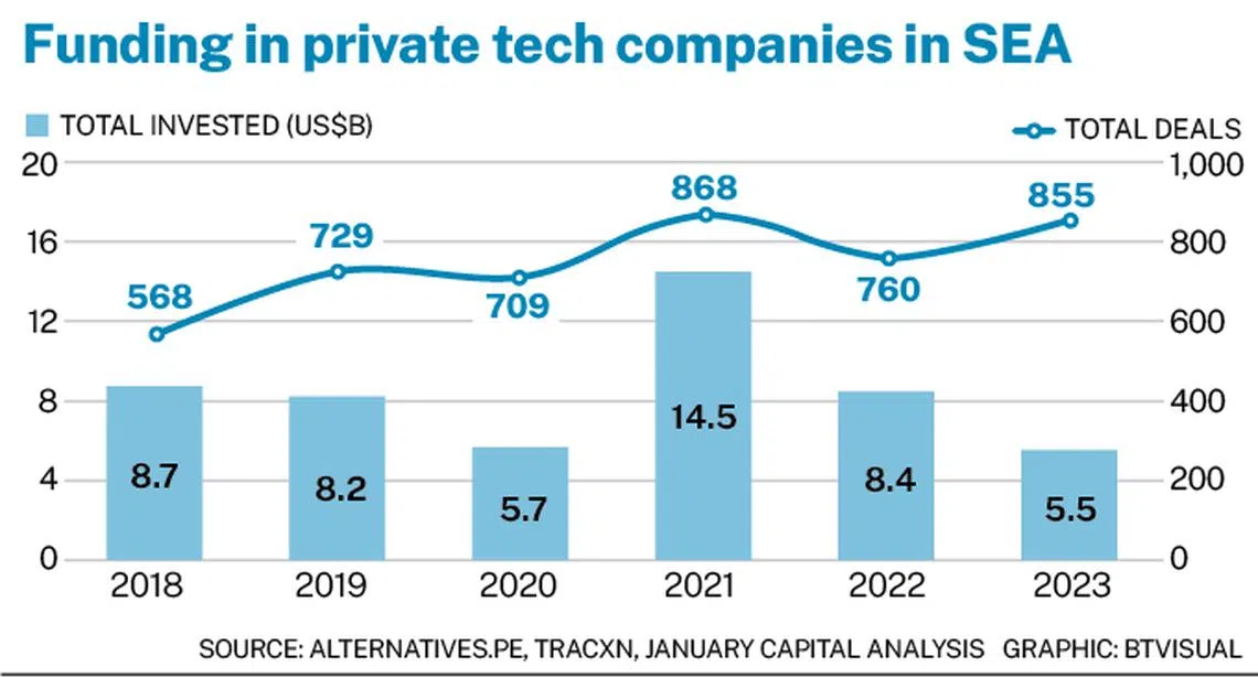 Asean tech funding down 35% in 2023 as late-stage deals dwindle