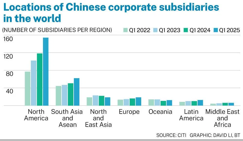 “Chinese parent companies have significantly increased their subsidiary presence in Asean and South Asia, with the number of active subsidiaries growing steadily between the first quarter of 2022 and Q1 of 2025,” said the analysts.