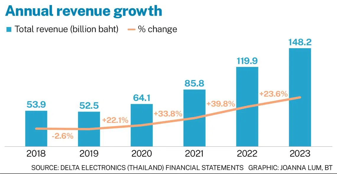 DELTA Electronics (Thailand), the largest electronics manufacturer listed on the Thai stock exchange, has its sights firmly set on maintaining double-digit year-on-year revenue growth over the next five years.