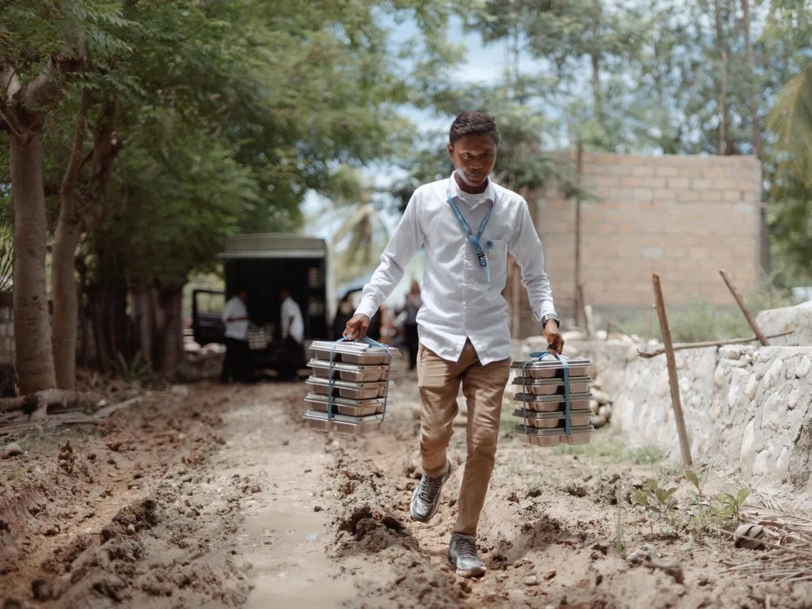 “The distances are long and some delivery points serve just 10 or 20 people,” Hautias said. “With muddy roads and frequent flooding, getting meals to them is often a real challenge.”