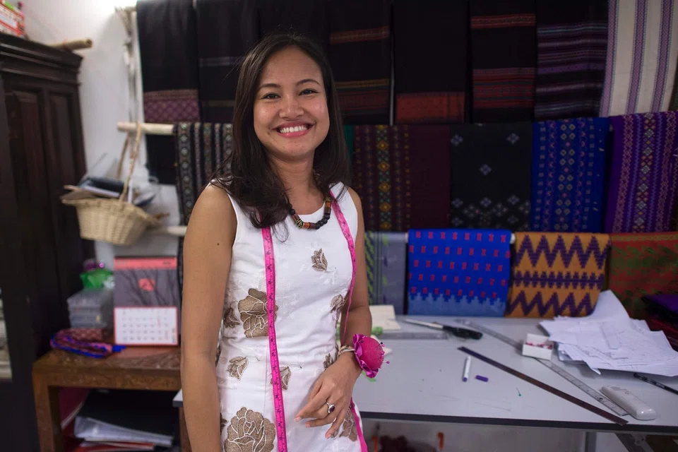 Inside her boutique in downtown Yangon, Pyone Thet Thet Kyaw crafts her own designs using traditional patterns and fabrics, many from ethnic minority groups, to make A-line skirts, dresses and tops.