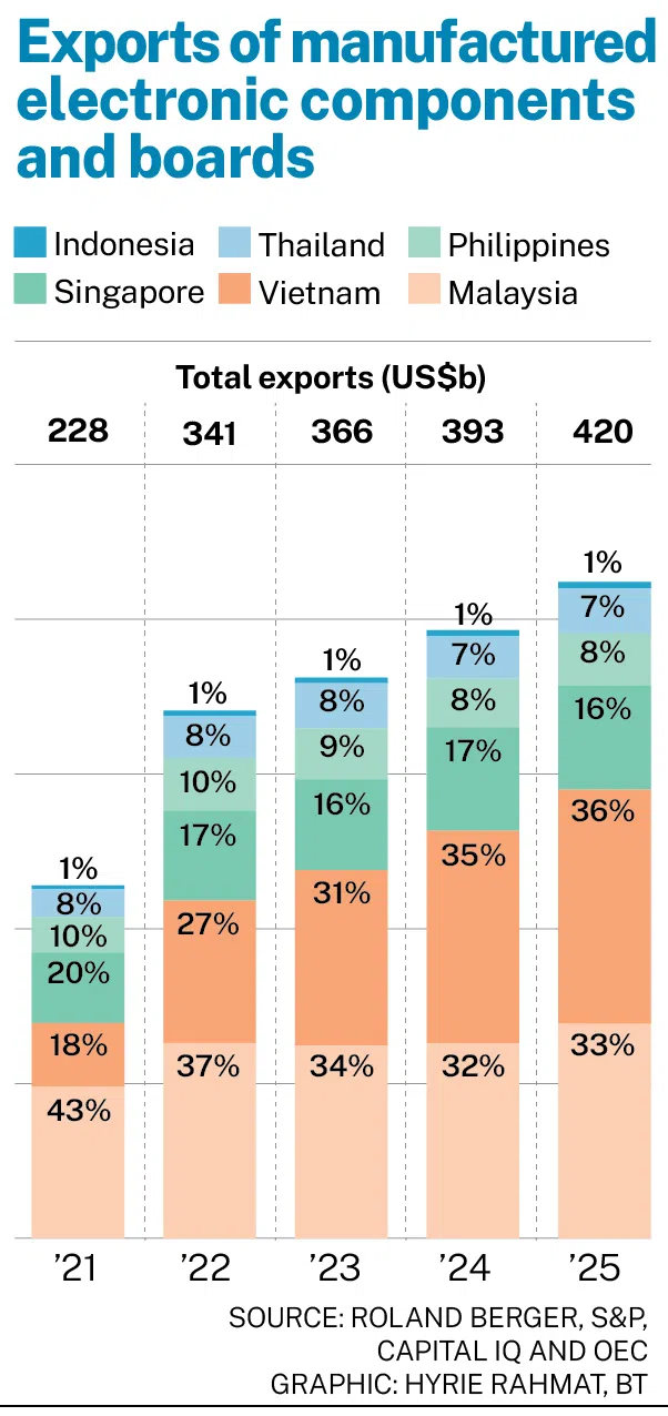 The report highlights the same trend – regional integration under the RCEP is boosting component flows, with parts now moving from Batam to Binh Duong to Penang before a single export declaration is filed.