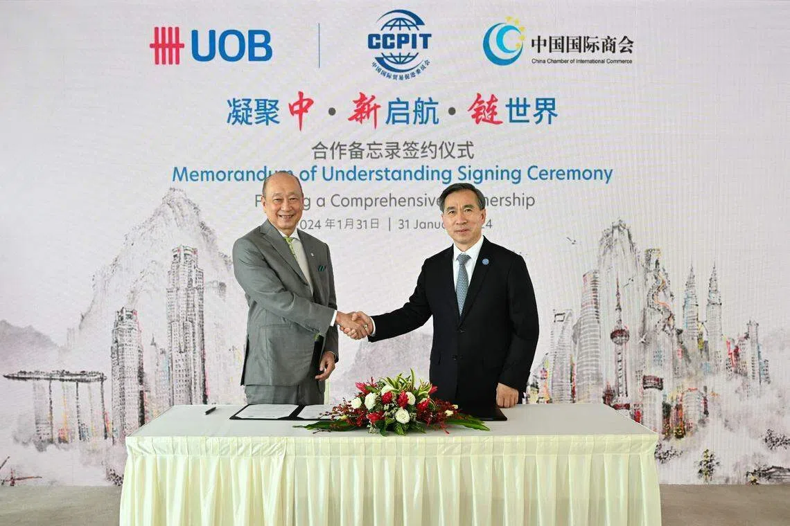 LOCAL bank UOB and the China Council for the Promotion of International Trade (CCPIT) on Wednesday (Jan 31) inked an enhanced memorandum of understanding to boost foreign investment and trade flows between China and South-east Asia.