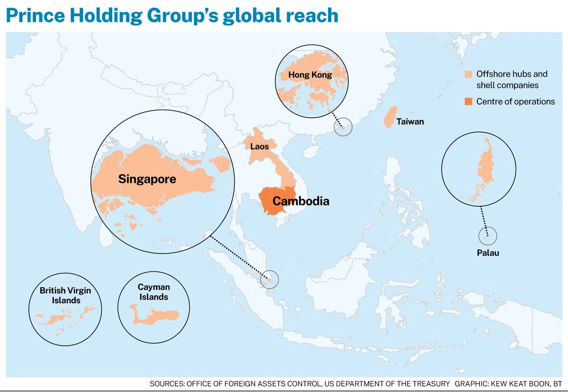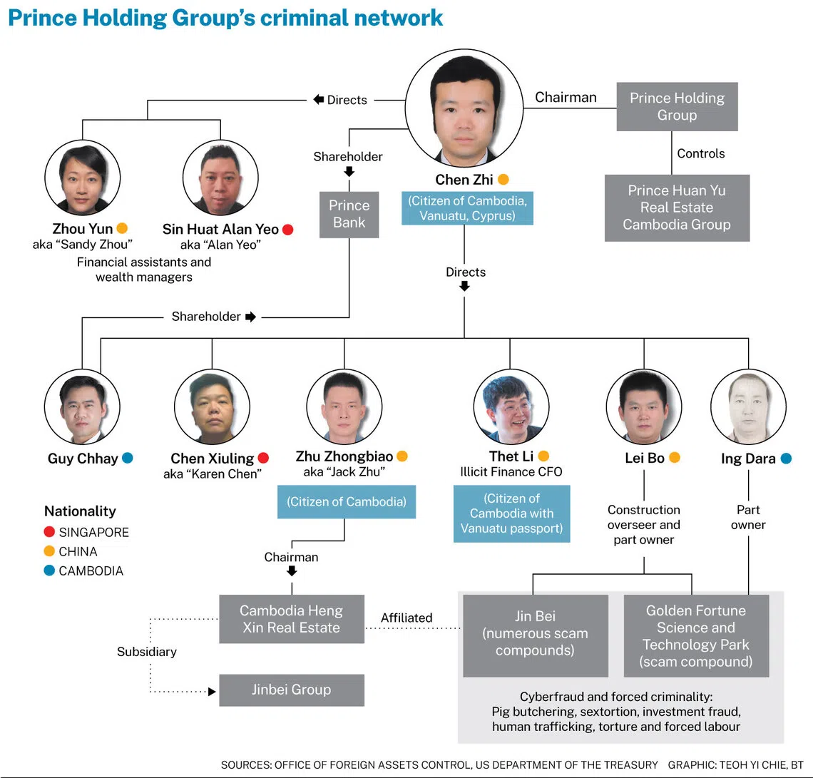 [SINGAPORE] In one of the largest financial fraud takedowns in history, three Singaporeans and 17 Singapore-registered entities have been sanctioned by the US over their alleged links to Cambodian national Chen Zhi, his affiliates and Prince Holding Group.