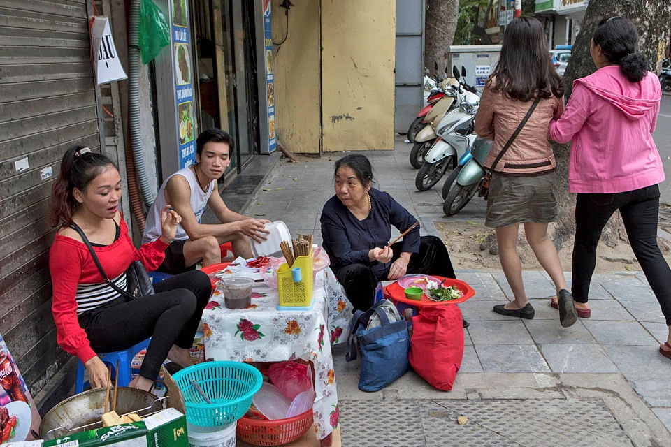 Police raids on pavement vendors have escalated sharply in downtown Hanoi since March, she said, and officers fine her about US$9, or two days' earnings, for the crime of selling bun dau mam tom - vermicelli rice noodles with tofu and fermented shrimp paste - from a plastic table beside an empty storefront.