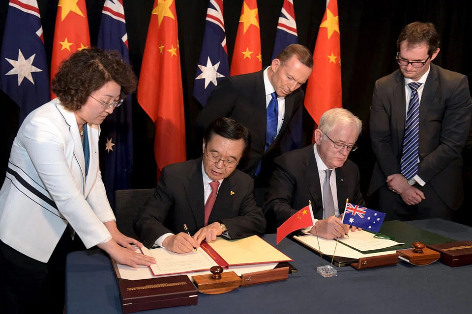 AUSTRALIA and China signed a landmark trade deal on Wednesday after a decade of talks, providing a boon for growth and jobs by abolishing tariffs across a raft of sectors. Trade Minister Andrew Robb and visiting Chinese Commerce Minister Gao Hucheng formally inked the document in Canberra, ending years of often difficult and protracted negotiations.