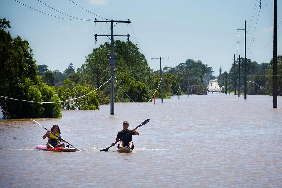 At least two people were dead and several missing after torrential rain inundated large areas of Queensland and New South Wales (NSW) states, flooding homes and forcing the evacuation of tens of thousands of people.