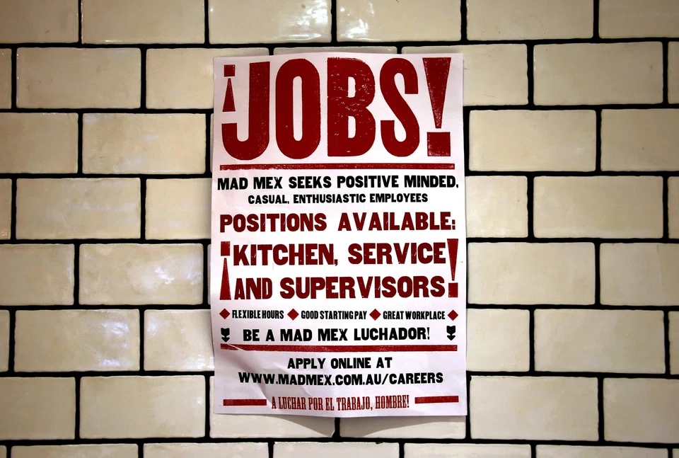 Full-time jobs fell by 8,800; part-time employment rose by 34,900.