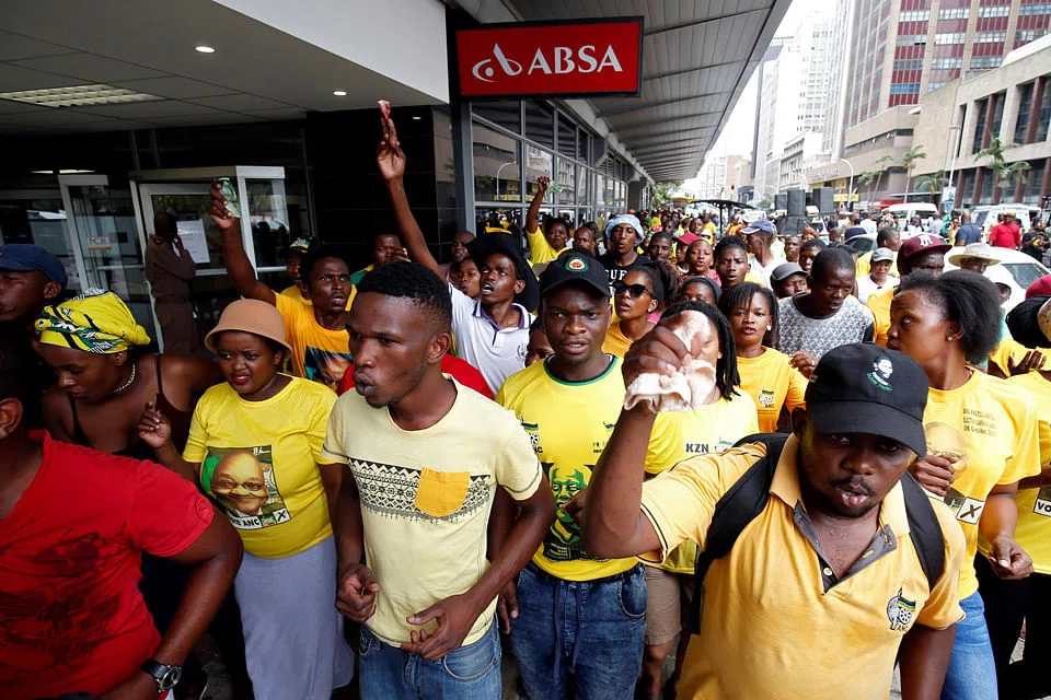 Protestors from the ruling African National Congress's (ANC's) youth wing invaded a Barclays Africa Group Ltd branch on Jan 26. On Monday, the ANC's top leaders said the four biggest lenders can't be allowed to continue dominating the industry.