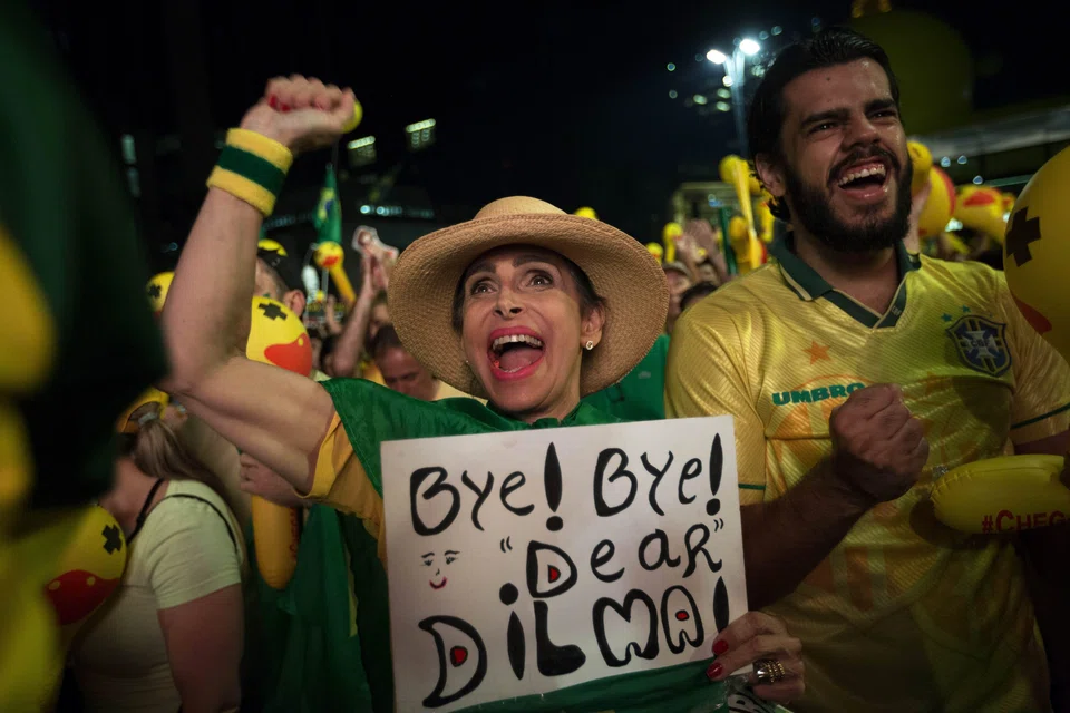 In Brazil's southern economic powerhouse of Sao Paulo, thousands of pro-impeachment demonstrators packed the central Avenida Paulista, draped in Brazilian flags and waving banners reading: "Dilma out".