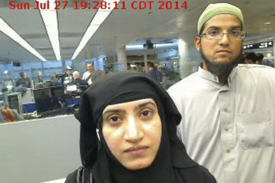 On Monday, ABC News broadcast a snapshot of the couple taken by immigration as they entered the United States as newlyweds in July 2014. It shows them both dressed in traditional Muslim clothing.