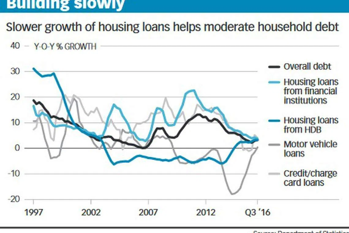 Initial signs for households' risk profiles seem promising: Household debt growth fell from an average of 6.9 per cent year-on-year over the last five years, to 2.8 per cent in the three months ended September 2016.