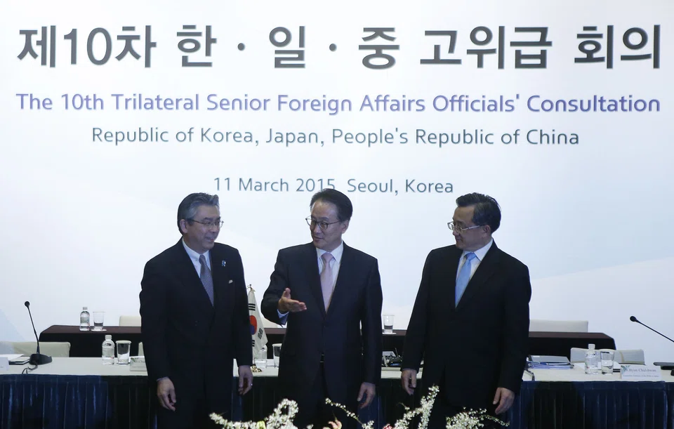A three-way summit can "hopefully follow the successful holding of foreign ministers' talks," Mr Lee told reporters. Japanese Deputy Foreign Minister Shinsuke Sugiyama separately said it would be "natural" to discuss a summit.