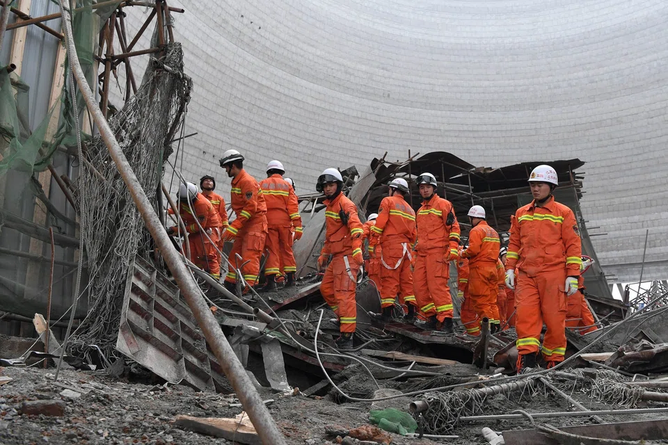 A platform more than 70m high in a cooling tower at the Ganneng Fengcheng power station in the eastern province of Jiangxi crashed to the ground early Thursday.