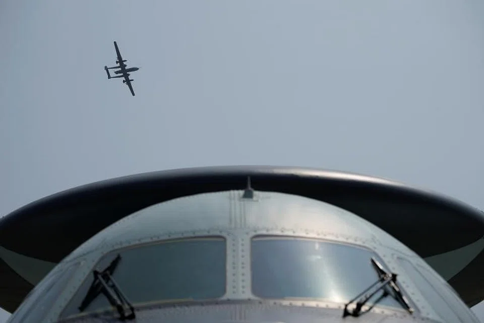 On Tuesday, the air force aerobatic team left colourful vapour trails as it manoeuvred in formation, while visitors inspected new jets, drones and attack helicopters on the tarmac.