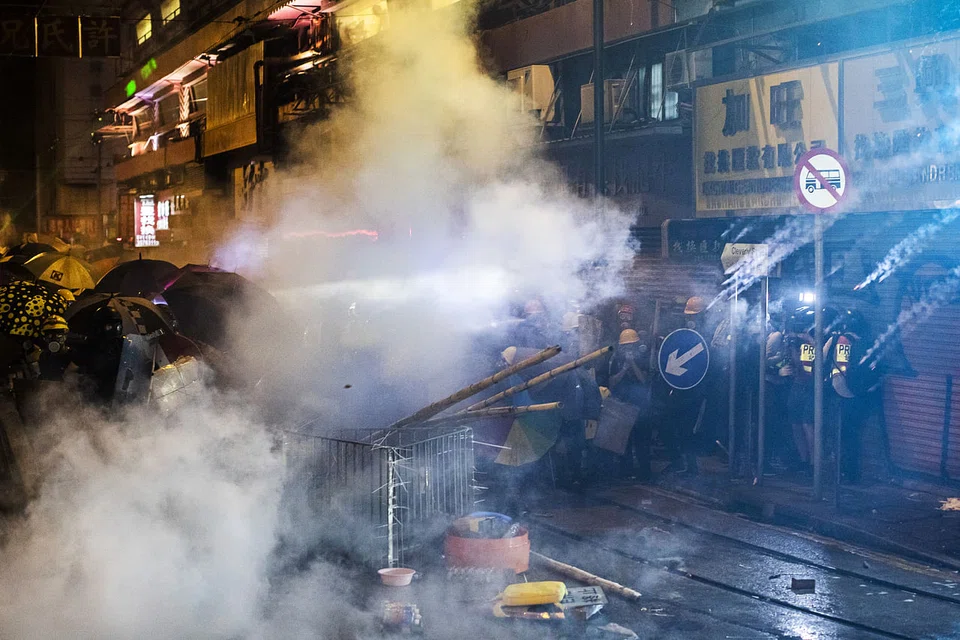 The Hong Kong and Macau Affairs Office, which answers to China's Cabinet, was compelled to respond after three days of protest that saw unauthorised demonstrations across four districts, including the airport and downtown shopping areas. Police on Sunday night fired clouds of tear gas over demonstrators in the normally buzzing area of Sai Ying Pun, which also hosts the main Chinese government office in Hong Kong.
