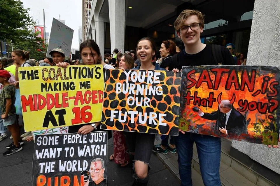 The protests have taken on extra urgency in Australia - the country's southeast has been devastated by hundreds of damaging bushfires in recent weeks.