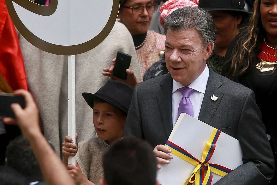 COLOMBIAN President Juan Manuel Santos has been awarded the Nobel Peace Prize for his efforts to bring an end to a more than 50-year civil war, giving momentum to peace efforts after an accord was defeated in a referendum earlier this month.