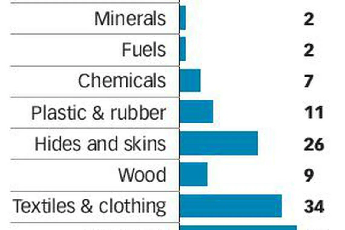 DBS economist Ma Tieying noted that mainland China alone accounts for 30-40 per cent of the world's total exports of textiles and footwear products, and 20 per cent of the world's exports of machinery and electrical equipment. This does not include indirect shipments through Hong Kong.