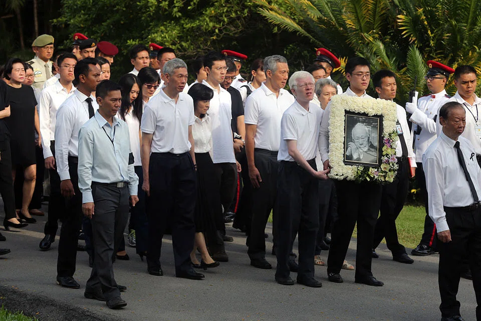The casket was then loaded on the ceremonial gun carriage. Mr Lee's eldest son, PM Lee, and the rest of his family followed on foot in a procession.