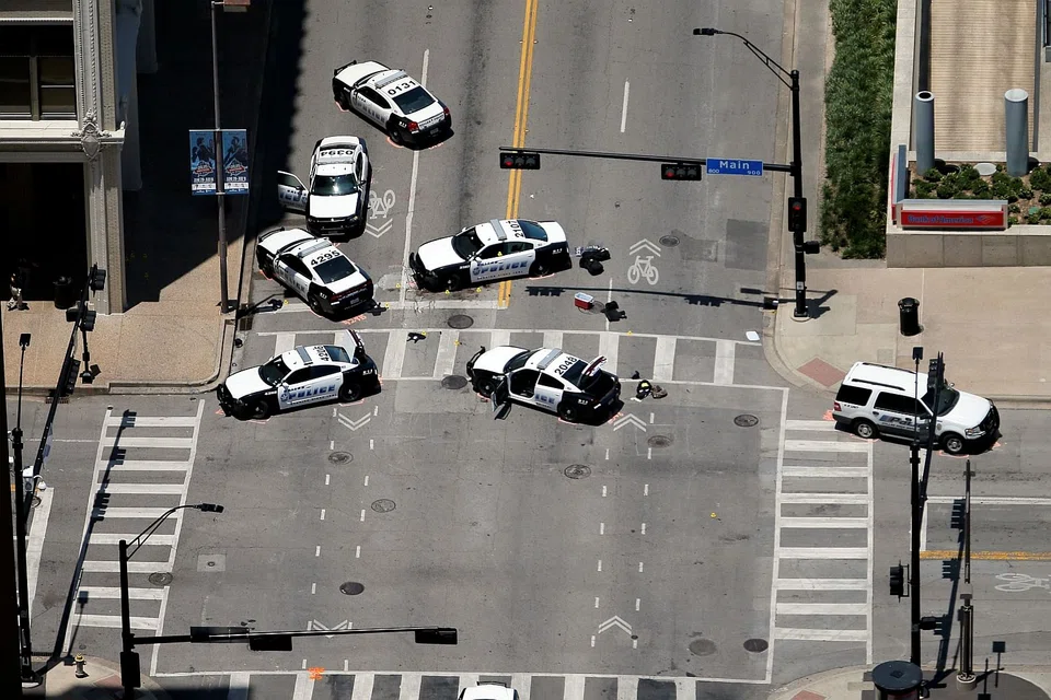 At least one shooter took aim at police. The shooting occurred not far from Dealey Plaza, where president John F Kennedy was assassinated in 1963.