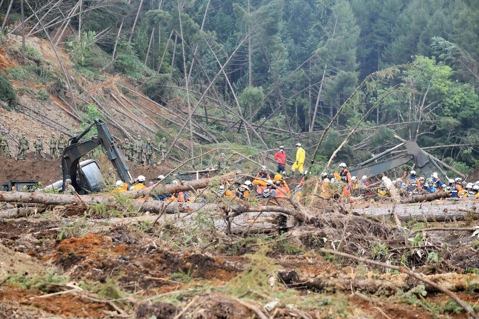 About 2,500 people remain in evacuation centres, according to the Fire and Disaster Management Agency, after landslides buried houses and rain at the weekend loosened soil in a further threat to unstable houses.