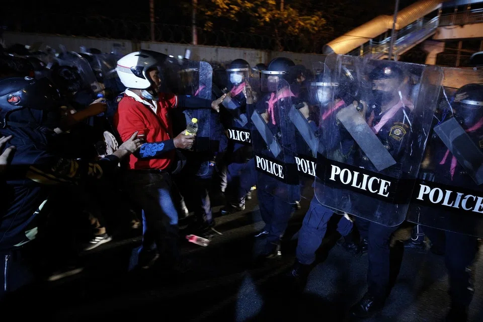 Ten protesters and 26 police officers were injured in the clash, Bangkok's Erawan Emergency Medical Centre said in a statement.
